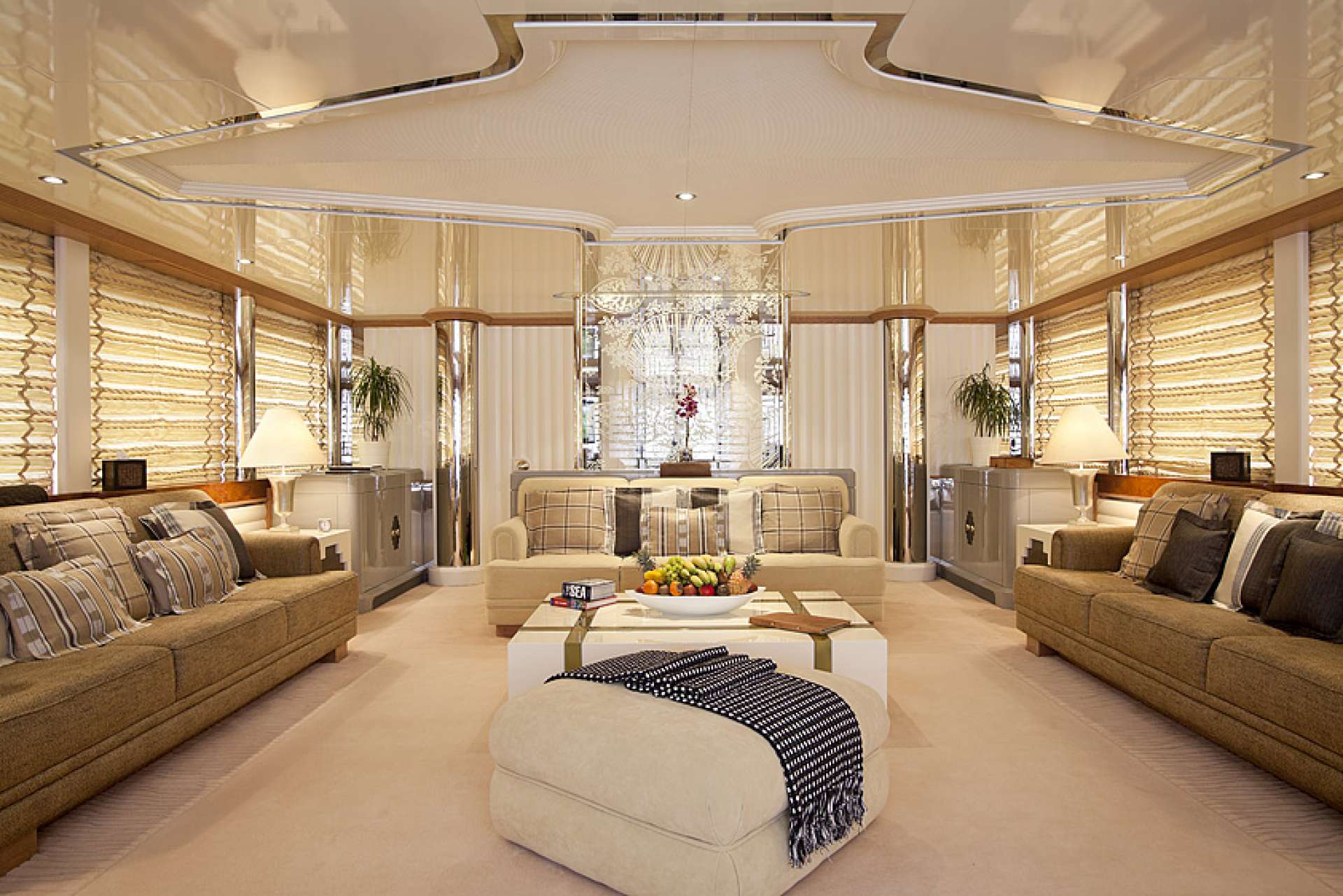 The upper deck forward hosts the helm station and Captain's cabin, behind which the sky lounge offers guests an extensive alternative living space.