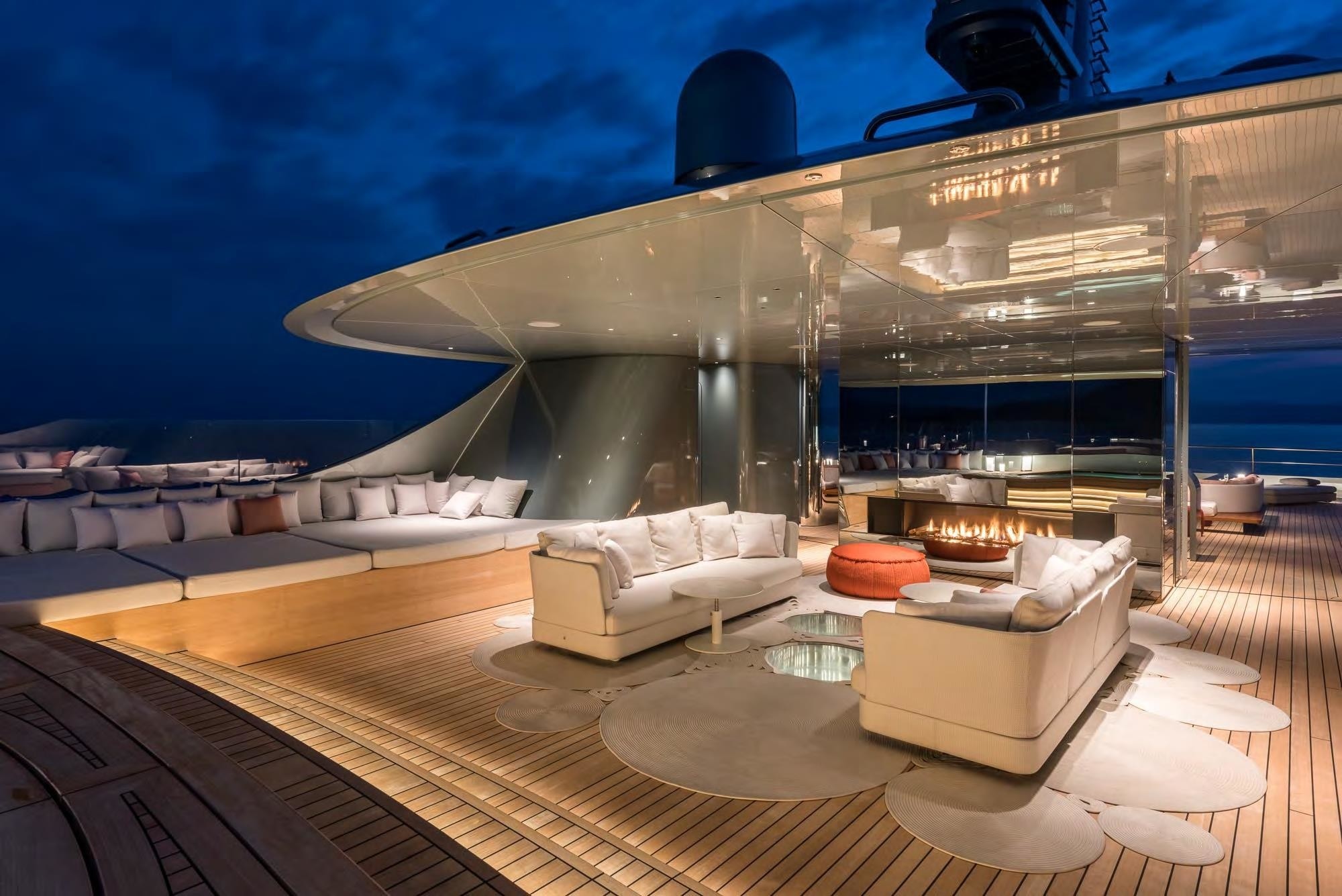 Towards the stern, the aft deck descends for easy access to the water and the tenders.