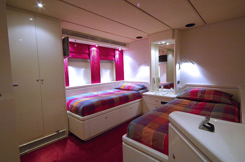 VIKING LEGACY offers luxury accommodation for up to 8 charter guests in 4 spectacular en suite cabins: The master cabin is situated forward on the main deck, with VIP double cabin and two twin cabins on the lower deck.