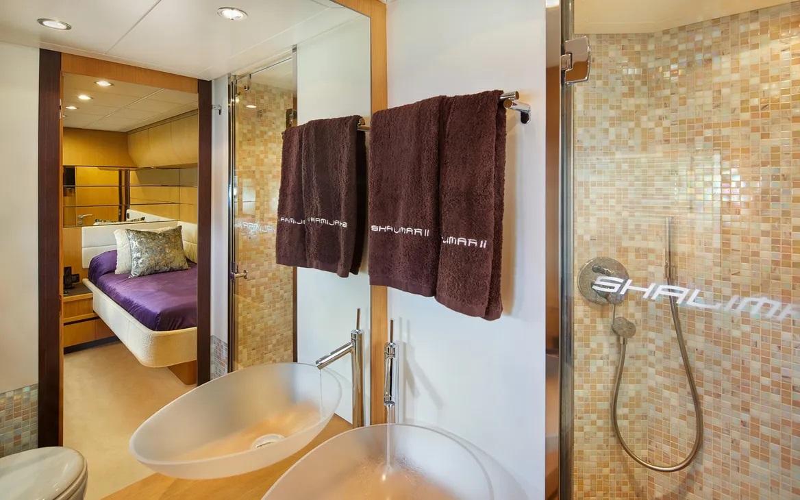 The bow offers an alternative place for guests to sunbathe and a Portuguese deck in front of the helm station provides a second alfresco lounge for outdoor dining and relaxation.