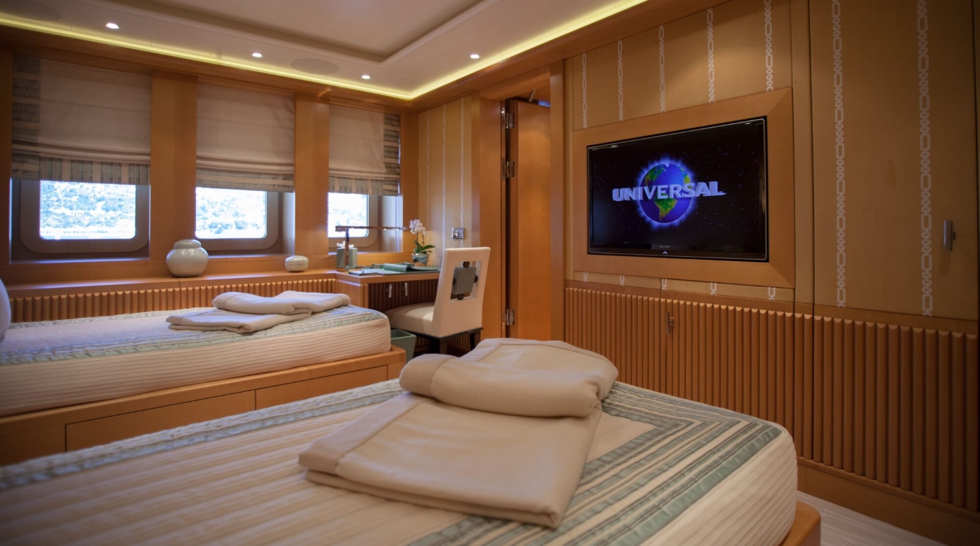 The accommodation is designed to sleep up to 12 charter guests over eight beautifully appointed en-suite cabins. She is ideal for clients looking for a sophisticated mega yacht that can offer unprecedented yacht charter experience with outstanding service and amenities on board.