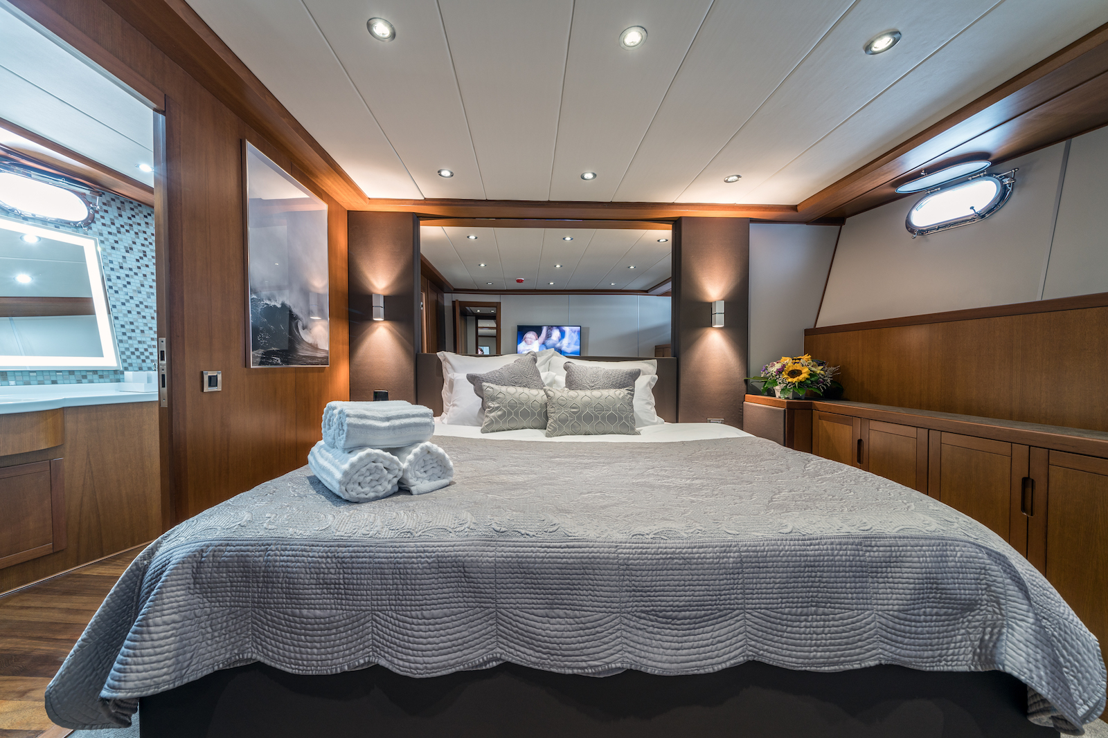 The onboard accommodation provides for up to eight guests over four cabins.