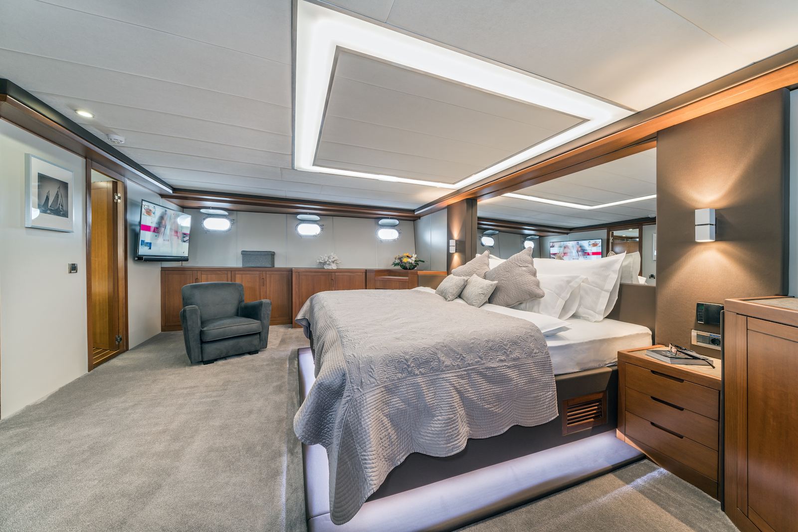 The onboard accommodation provides for up to eight guests over four cabins.