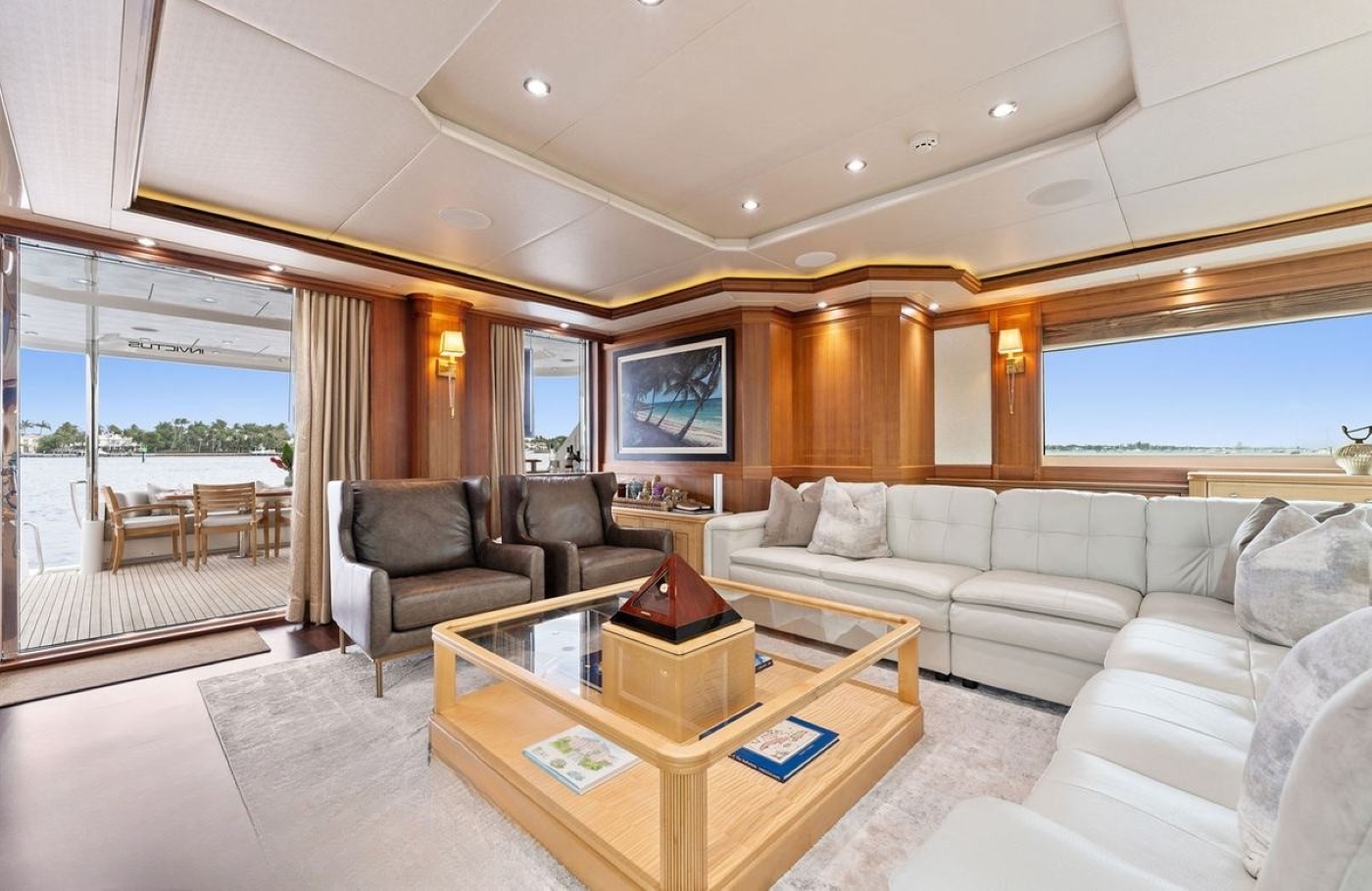 The sundeck presents more opportunities for al fresco living with another dining table for eight and a wet bar. A BBQ, two fridges and an ice-maker ensure guests will have every one of their needs attended to while enjoying the ...