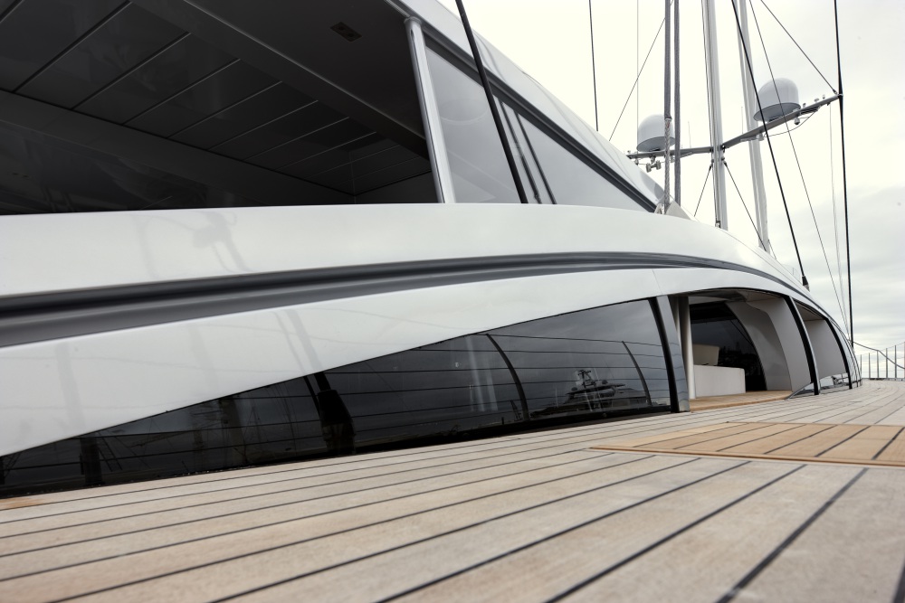 She has the naval architecture and exterior styling of Philippe Briand, the interiors are the work of Christian Liaigre and the layout contains five en-suite cabins to sleep up to 12 charter guests.
