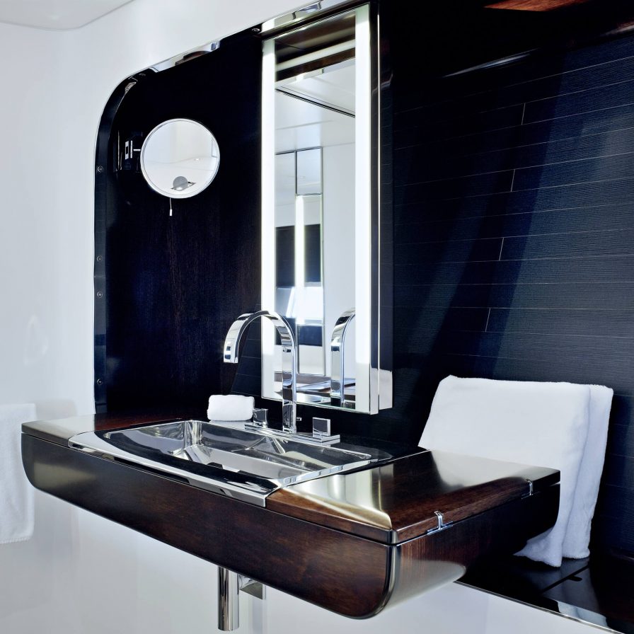 She has the naval architecture and exterior styling of Philippe Briand, the interiors are the work of Christian Liaigre and the layout contains five en-suite cabins to sleep up to 12 charter guests.