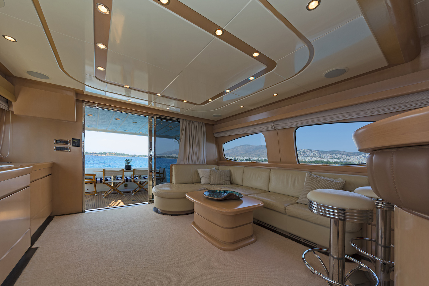 The yacht is powered by twin MAN 1360hp engines and cruises at 25 knots, she reaches impressive top speeds of 33 knots on her planing hull design.