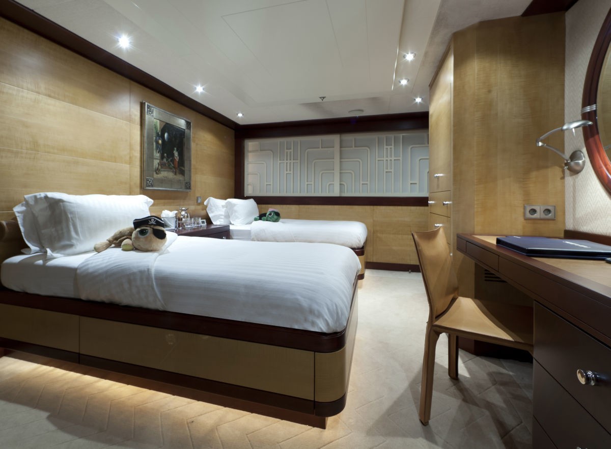 Behind the Captain's cabin and the office is the lobby and the VIP staterooms are located on the port and starboard sides, enjoying plenty of natural light and elevated views, plus a large en-suite bathroom with private ...