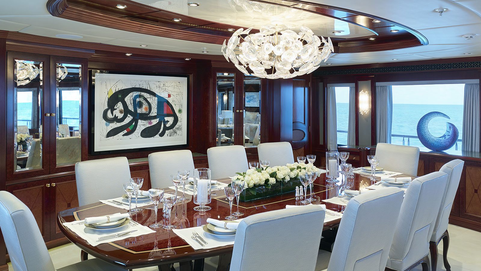 The lower deck contains the tender garage and a day head for guests to use while sunbathing on the swim platform.