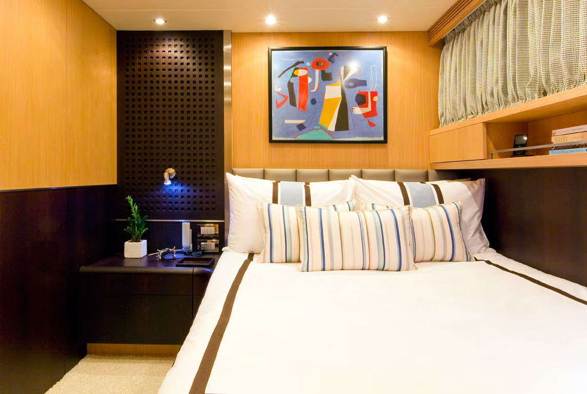 Luxury motor yacht ASHA offers luxury accommodation for up to 9 guests in 4 well appointed cabins. The Master cabin is located forward; her VIP aft, and the remaining double and twin cabin (with a pullman bed) are situated amid ships to the port and starboard. All of the Cabins have en-suite facilities.