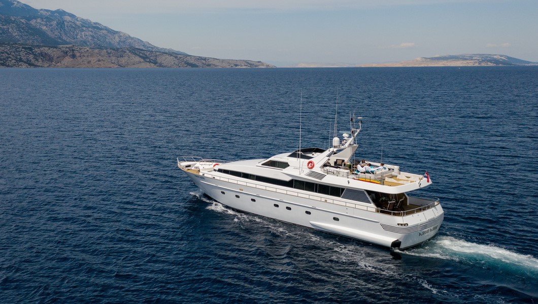 26m motor yacht BORA BORA (ex Bora Bora II) provides yacht charters in The Mediterranean, Europe, Zadar, Slovenia, Pula, East Med, and Dubrovnik.