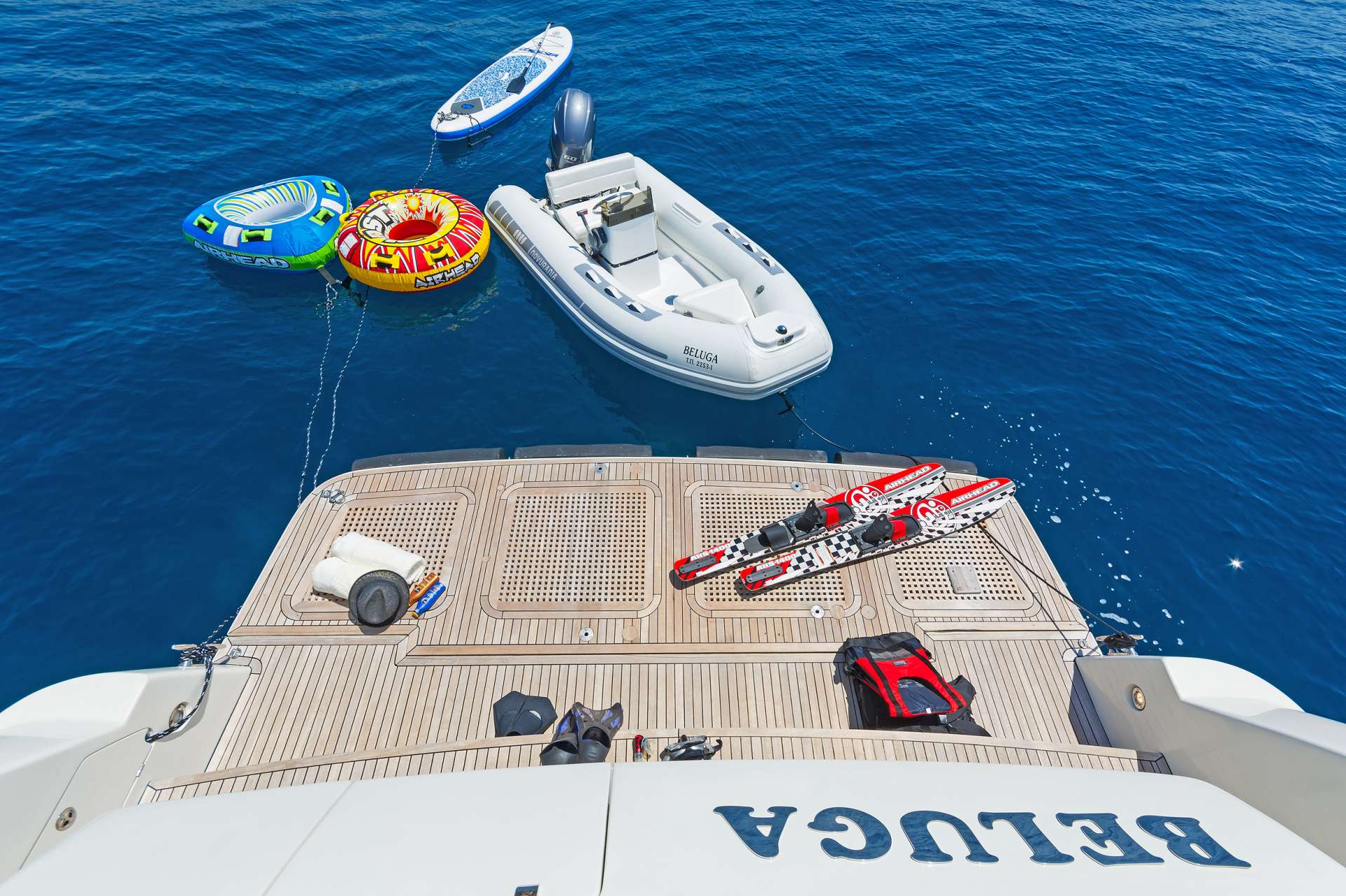 NOTABLE FEATURES OF BELUGA: ~Top speed of 28 knots ~Classic lounge with high-quality AV entertainment systems ~Large flybridge with sunbathing area ~Shallow draft allows closer navigation to beaches ~Spacious guest ...