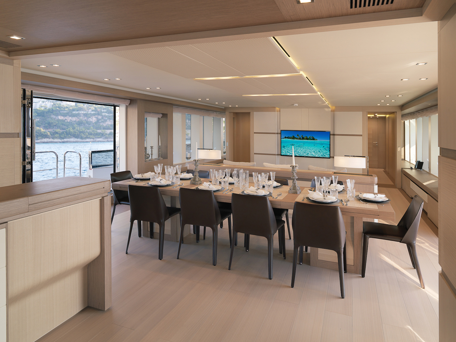 The upper deck aft is ready to host an intimate special occasion and ...