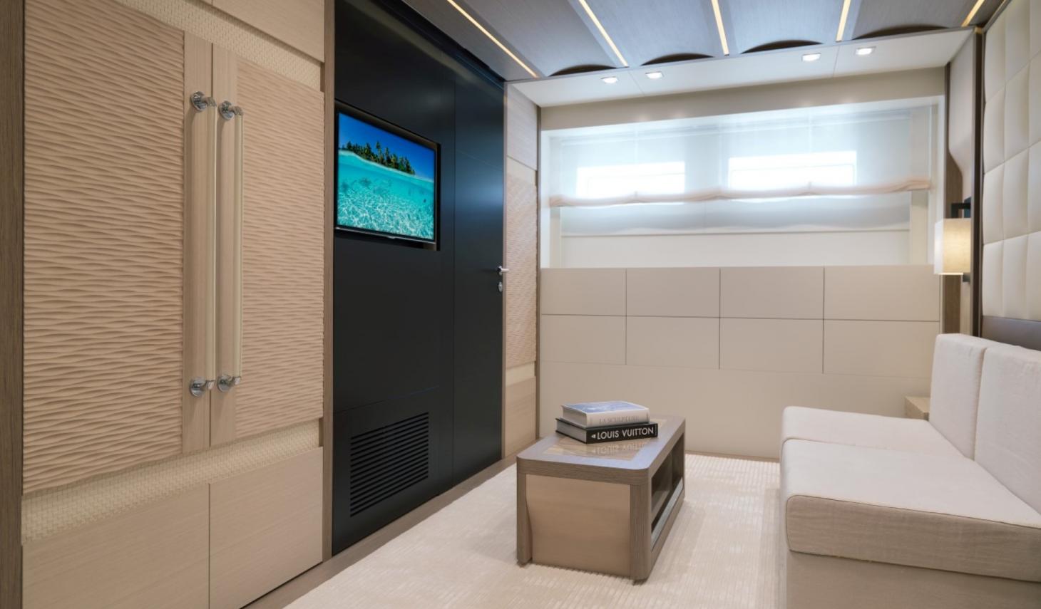 Staircases lead up to the main deck aft where guests can dry off after swimming and enjoy an alfresco meal together at the casual and conversational setting.