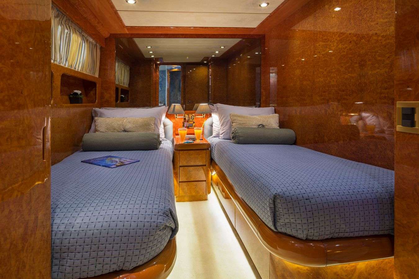 She is constructed with an aluminium hull and superstructure and sleeps up to eight guests across four large en-suite cabins.