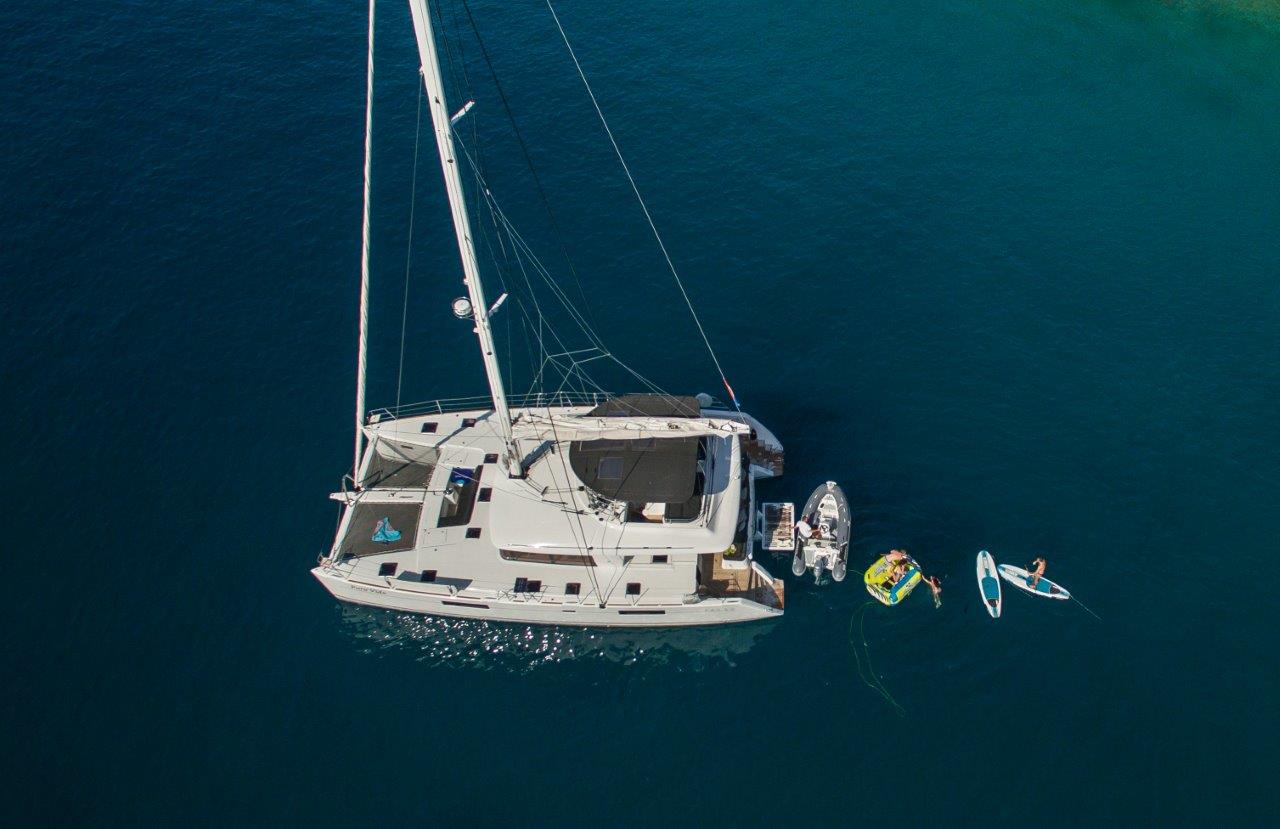 17m catamaran PURA VIDA provides yacht charters in The Mediterranean, Europe, Zadar, Trogir, Split, East Med, and Dubrovnik.