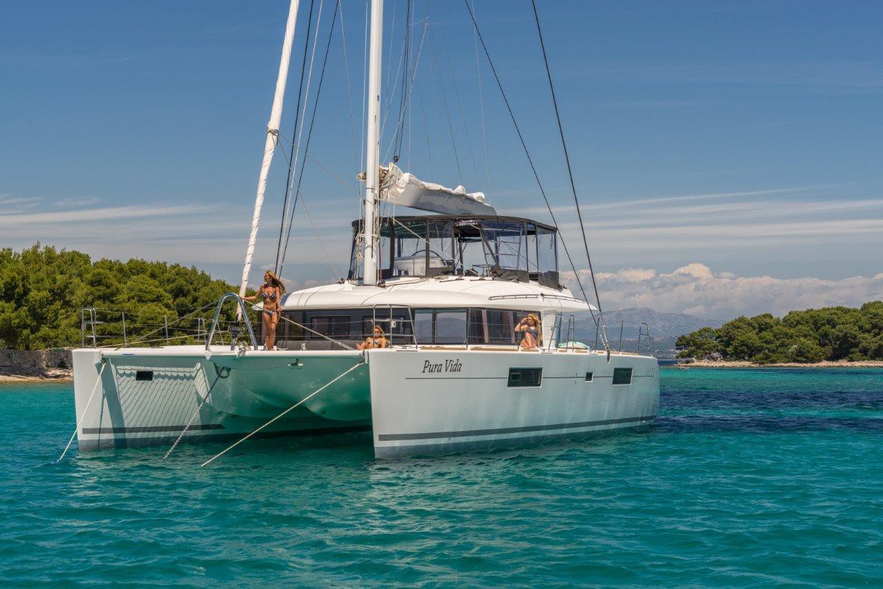17m catamaran PURA VIDA provides yacht charters in The Mediterranean, Europe, Zadar, Trogir, Split, East Med, and Dubrovnik.
