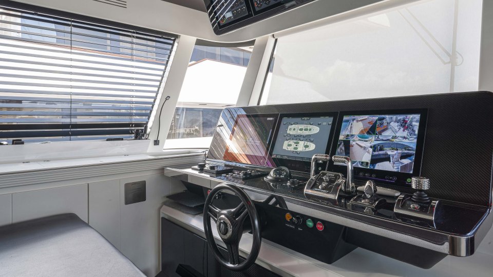 The staircase connecting to the main deck is placed to starboard to increase the space in the salon above.