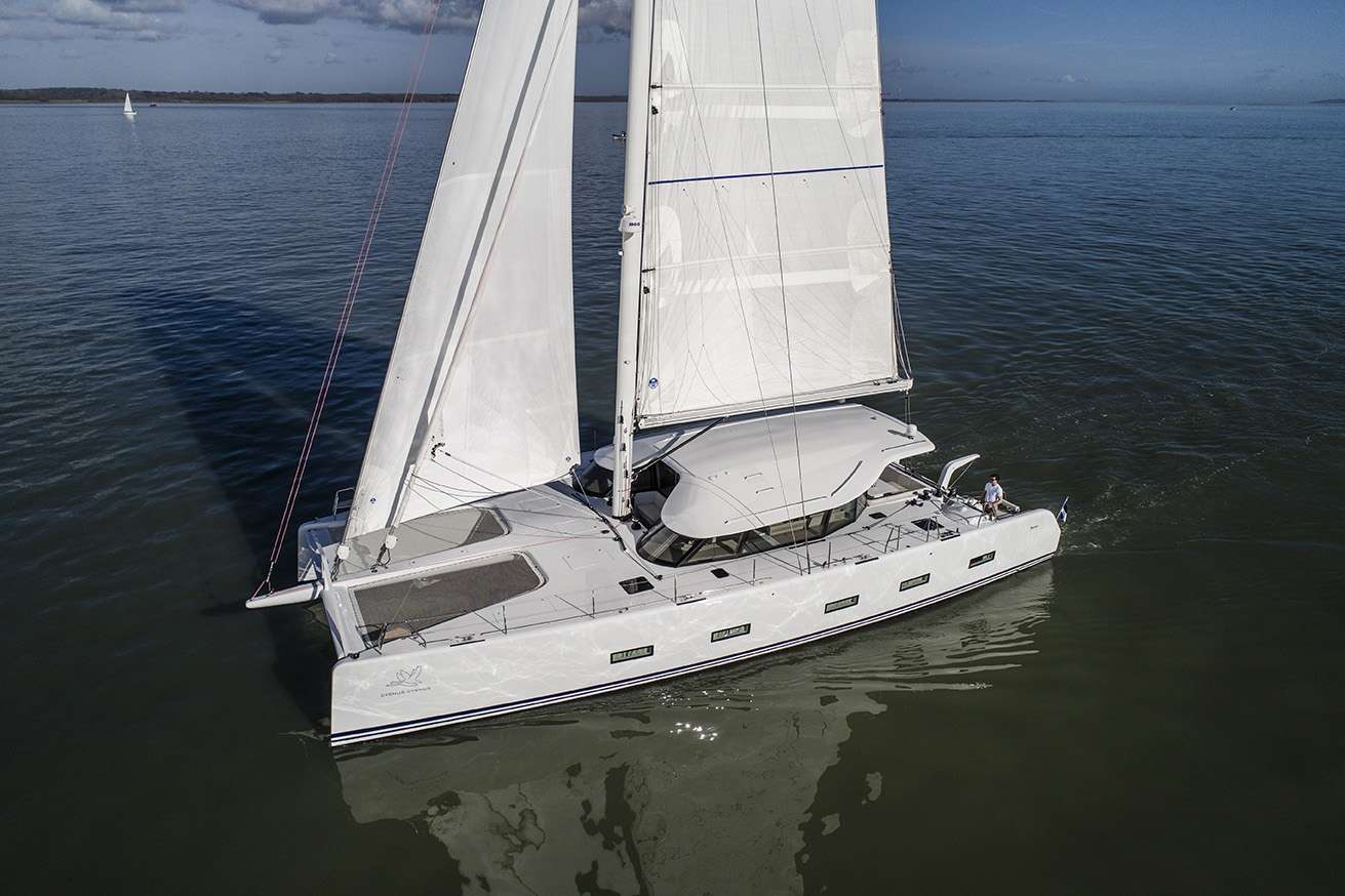 The drinks tables can also be used for casual alfresco dining and on the stern a swim ladder provides easy access into and out of the water. The main deck forward is an ideal sunbathing area with two forward trampolines.
