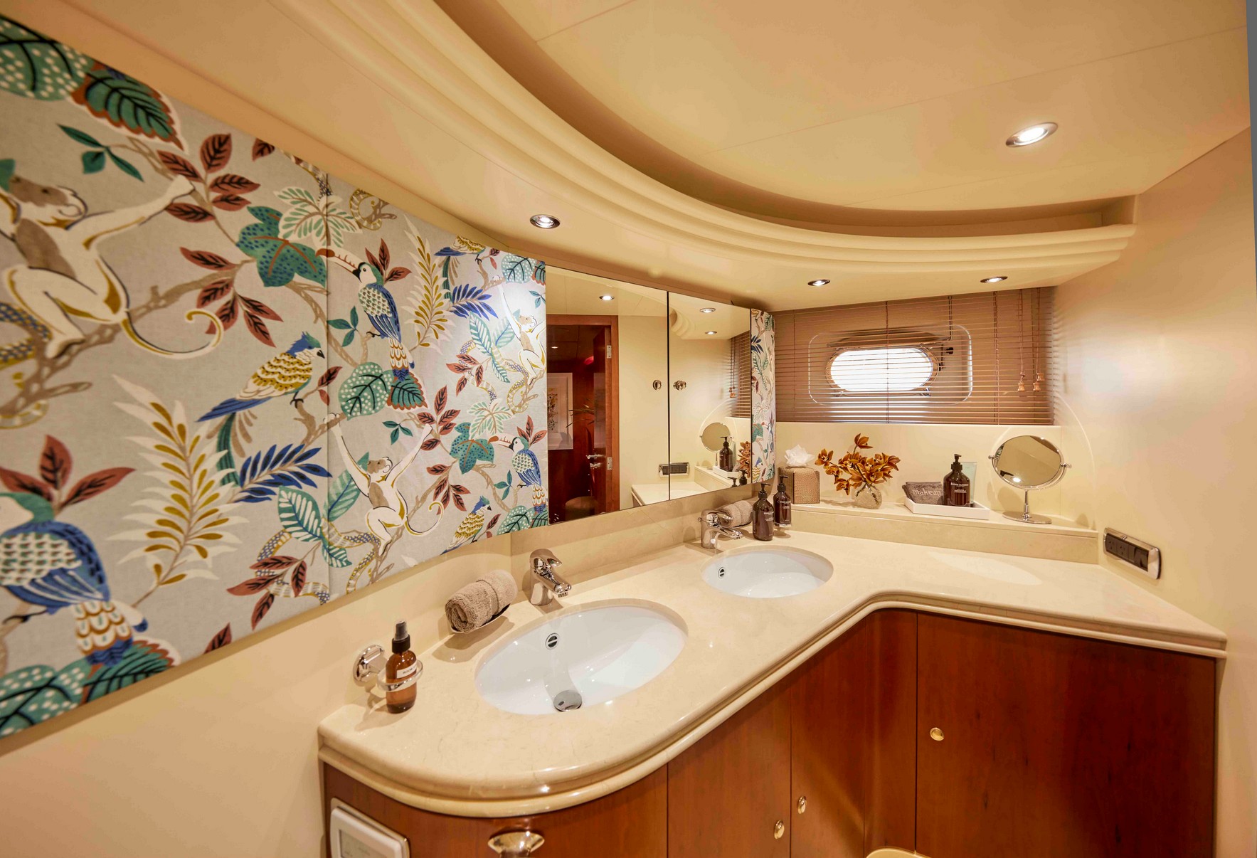 The Master cabin and VIP cabin have private ensuite bathroom facilities, while the two twins share a bathroom. Warm wooden panelling and furnishings in white and blue make tranquil surroundings for a comfortable night's rest.