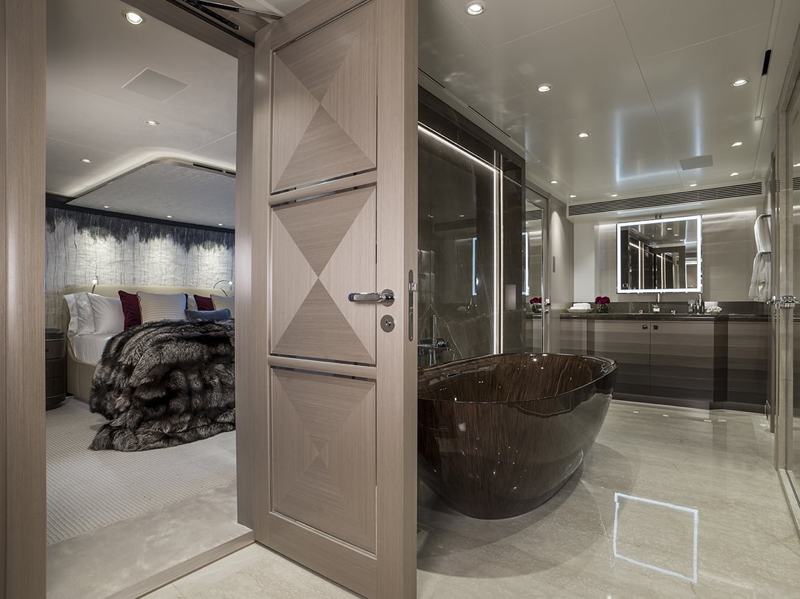 A semi-displacement full-custom lightweight aluminium superyacht, she was designed, both on the exterior and interior by Eidsgaard Design. Accommodation for up to ten guests on board spreads over five cabins in addition to accommodation for a crew of 10.