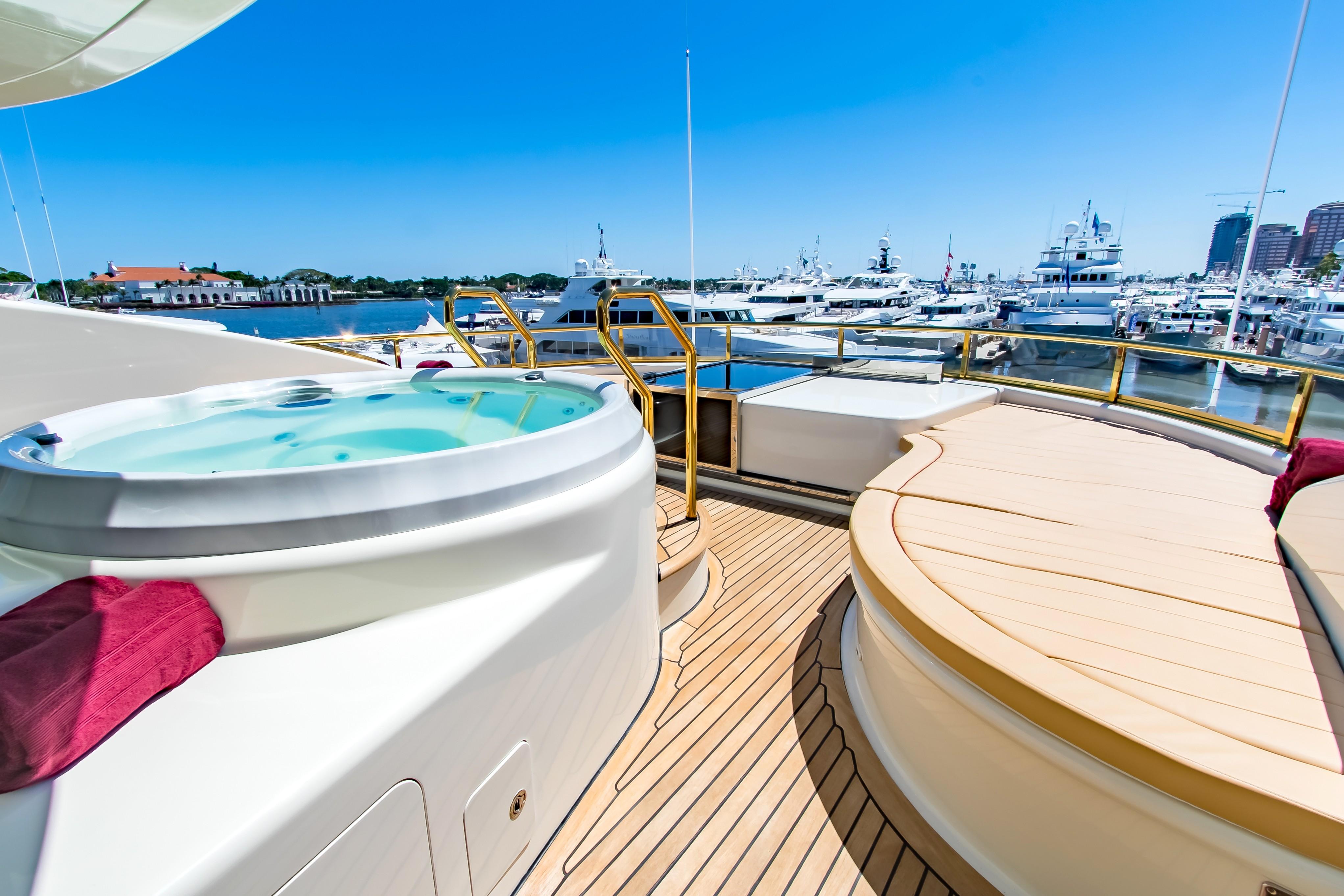 NOTABLE FEATURES OF GOLDEN TOUCH II: ~Three indoor lounges ~Main deck VIP stateroom ~Upper deck Jacuzzi ~Master suite with open plan lounge and private terrace ~Theatre room ~Impressive top speed of 24 knots