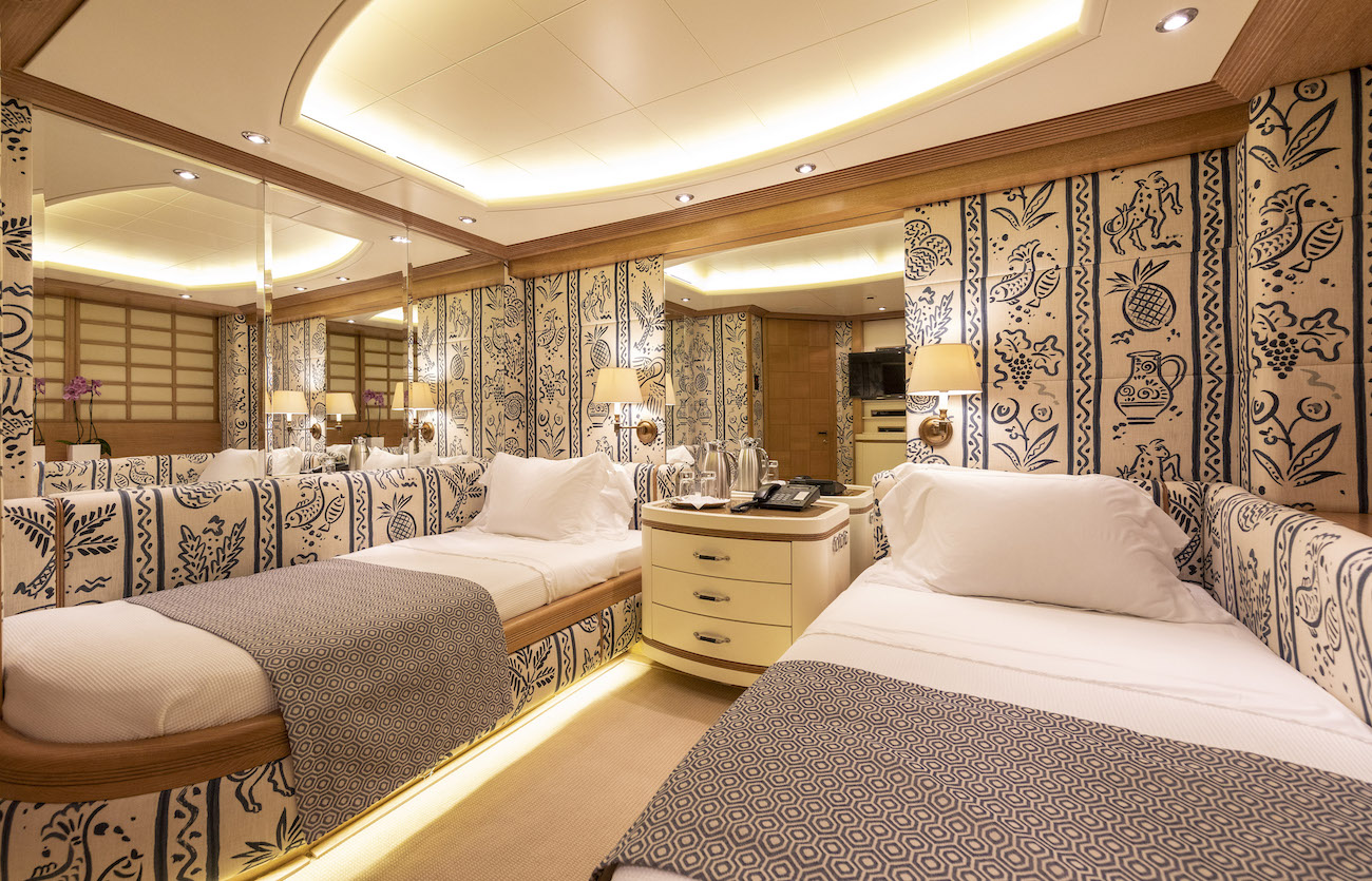 Refitted in 2018, the yacht offers inviting and tastefully-decorated interiors, accommodating up to 12 charter guests in 7 cabins. A crew of 12 provides impeccable service at all times and ensures everyone has a relaxing holiday on board.
