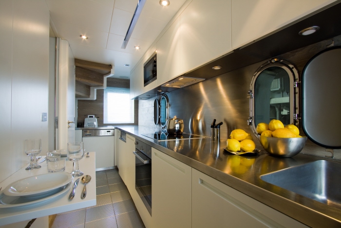Fully equipped in order of electronics, the interior are bright and modern; the saloon has 2 wide sofas with contiguous table, perimetrical fornitures with fridge and ice-maker. She offers a four cabin layout with ensuite ...