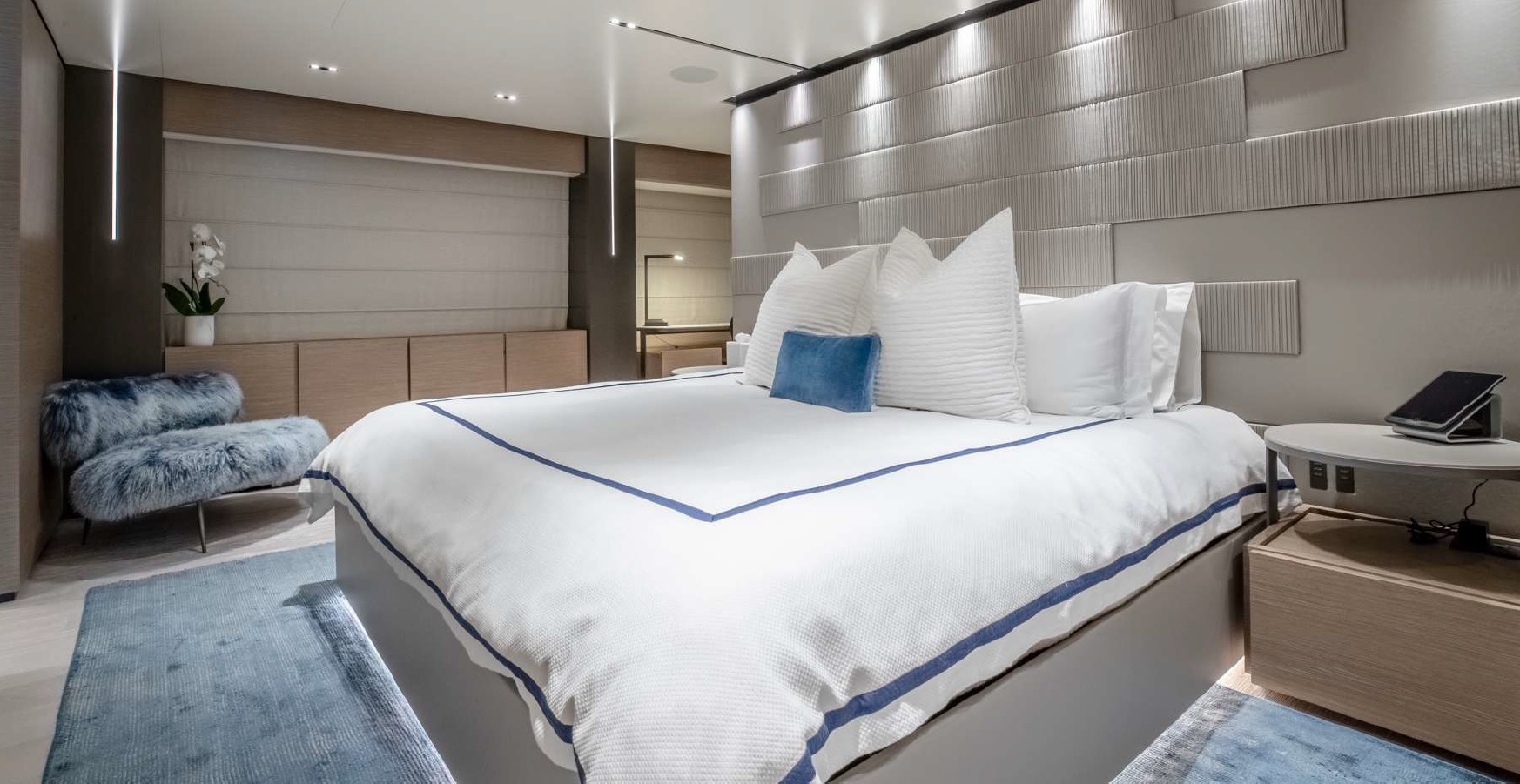 The yacht boasts the yard's in-house naval architecture and was designed by Zuccon International Project, both interior and exterior-wise. Accommodation is offered in 5 cabins for up to 10 guests.