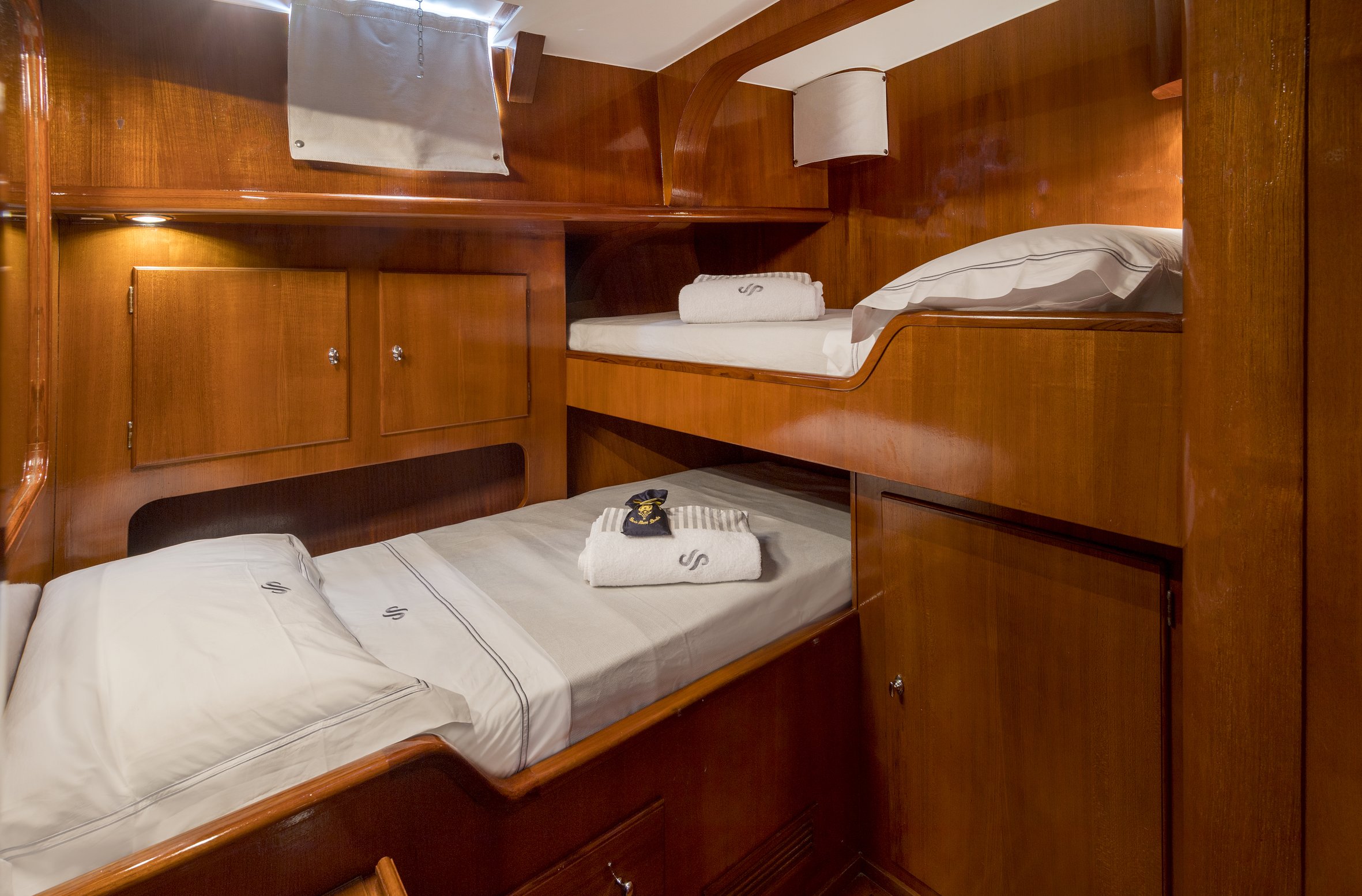 Accommodation is provided for up to 8 guests in 4 cabins, and there is a crew of 4 on board.