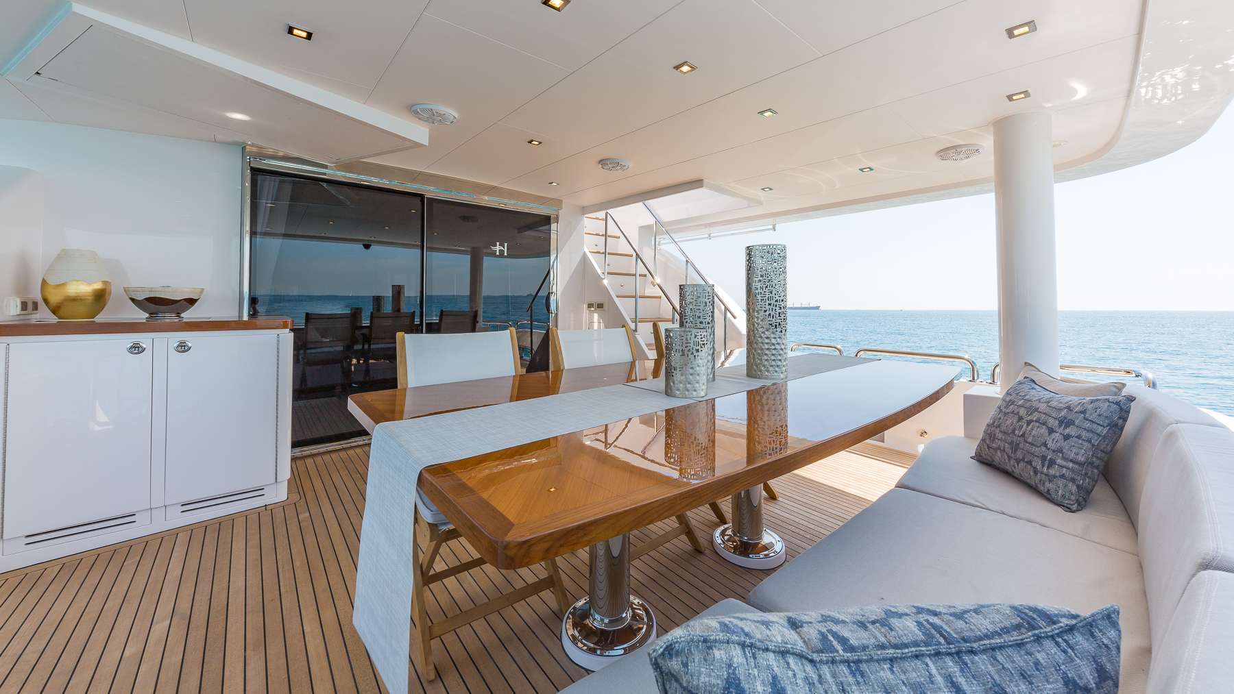 Her naval architecture is by Hargrave Custom Yachts, while her modern, airy and bright interiors were designed by Shelley DiContina. She has an attentive and professional crew of 4 and sleeps up to 8 charter guests in 4 spacious cabins.