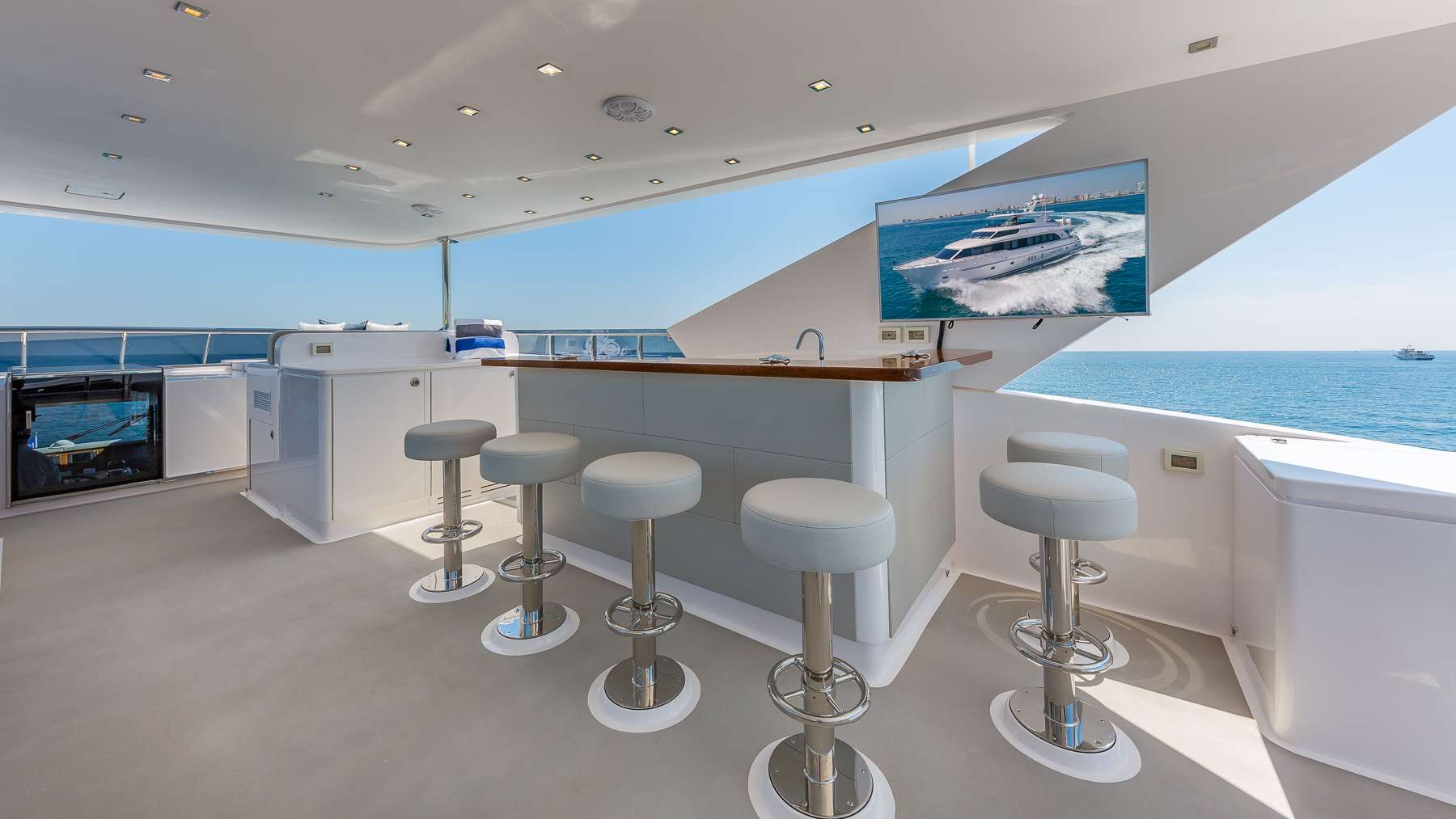 The yacht is fitted with CAT C-32 engines and two Northern Lights generators of 38kW, powering her up to a speed of 24 knots, while her cruising speed is 21 knots.