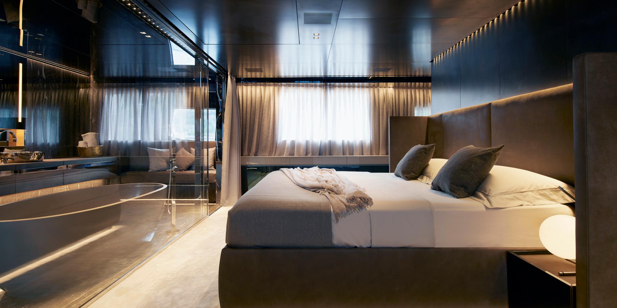 The full-beam Master suite is on the main deck forward and also benefits from a private lounge and study area.