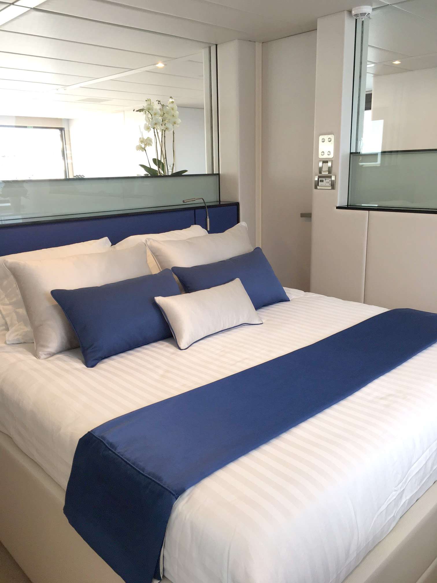 She was launched in 2017 and features expansive deck area, including accommodation for up to 10 charter guests in 5 cabins. She has a crew of 3.
