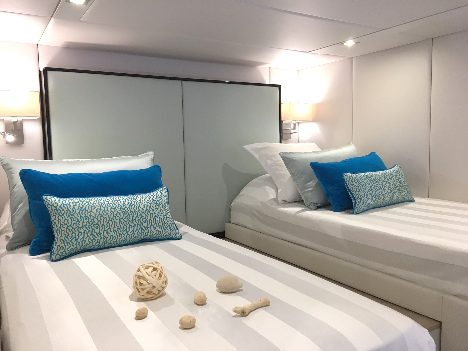 She was launched in 2017 and features expansive deck area, including accommodation for up to 10 charter guests in 5 cabins. She has a crew of 3.