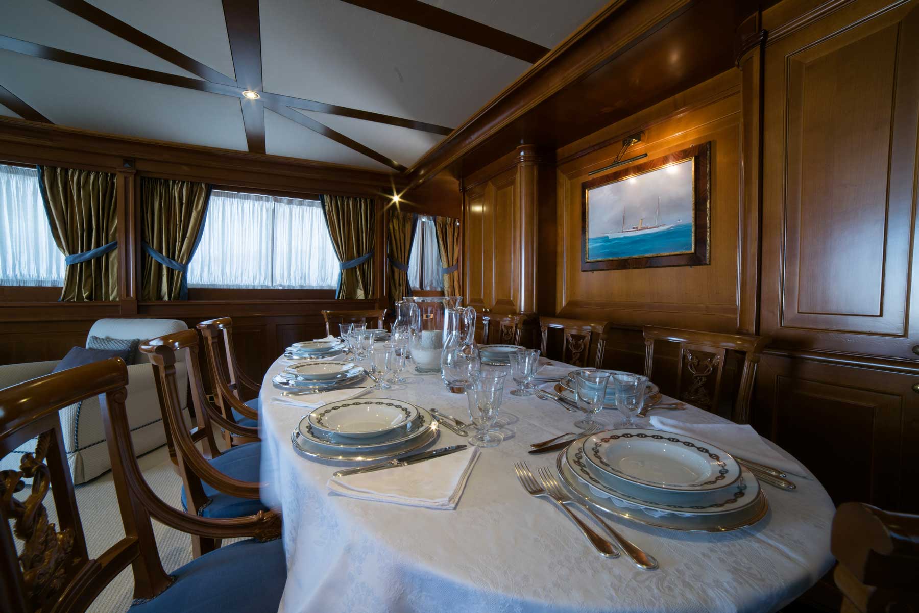 The luxury motor yacht has several areas for sunbathing or relaxation, as well as a large shaded dining table on the sundeck. She offers accommodation for a total of 12 guests.