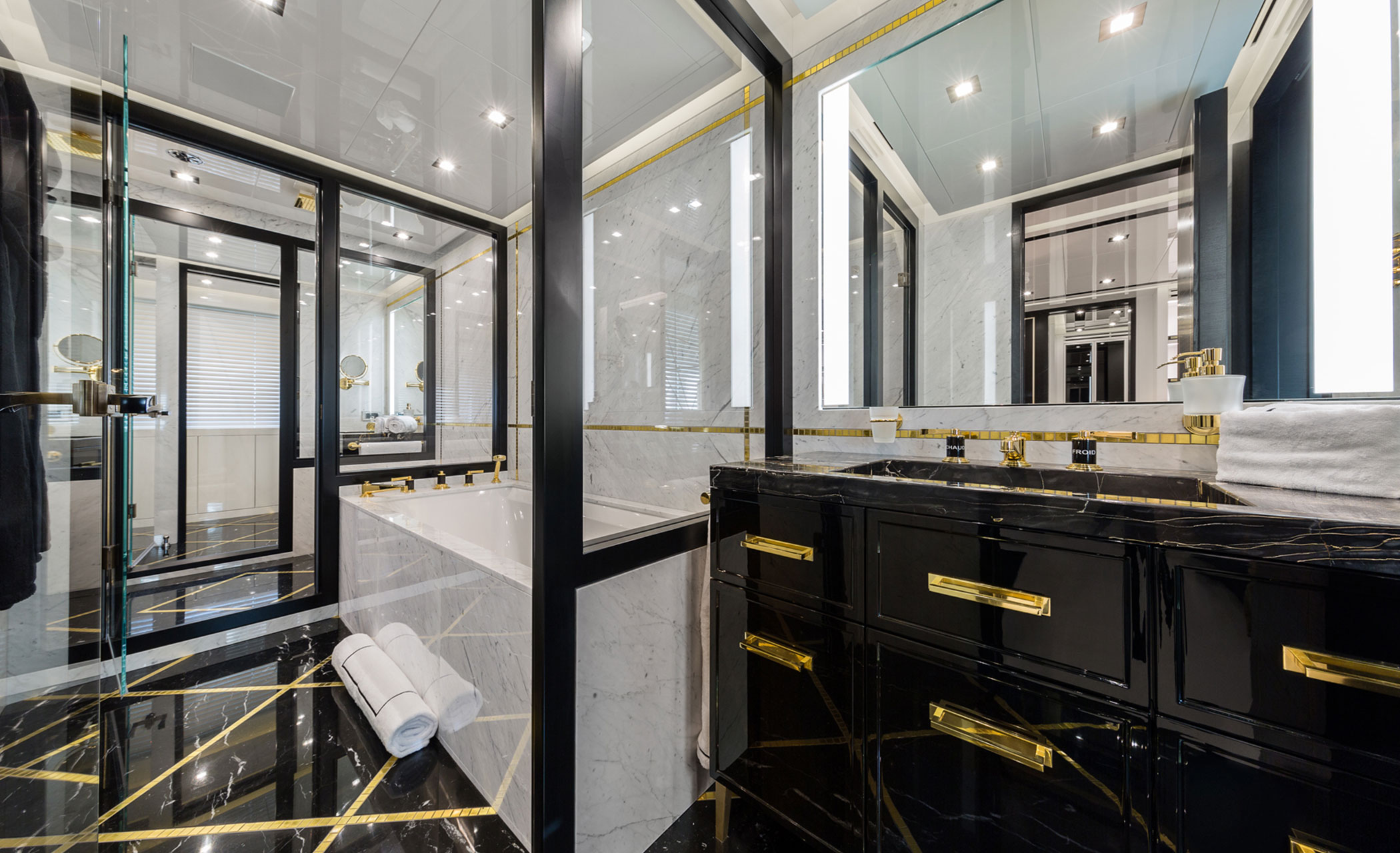 Forward is the engine room, the crew accommodation, mess and galley amidships and the rest of the space is dedicated to the guest accommodation, which consists of a Master suite, three double cabins and a twin cabin with four ...