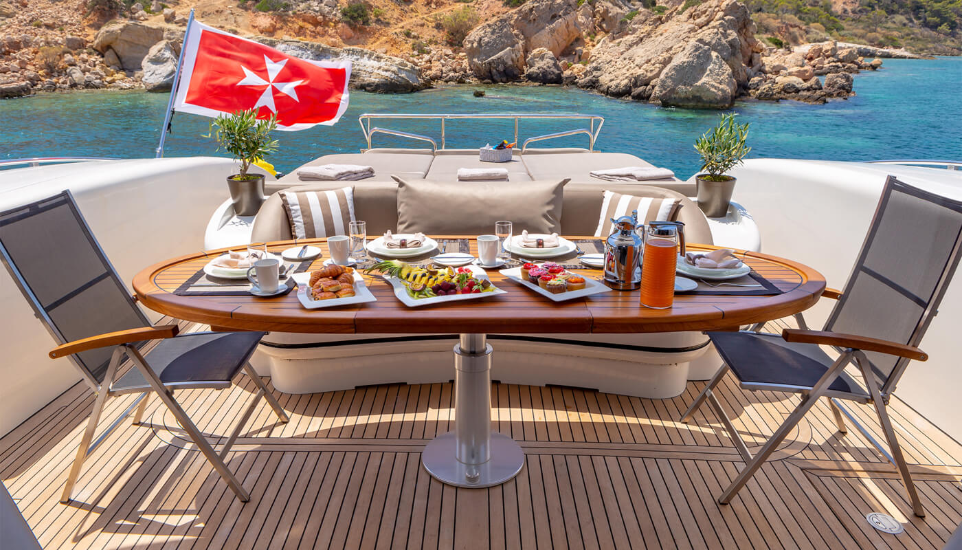 Her exteriors are equally well laid out with a possibility for alfresco dining on the exterior aft deck as well as sunbathing both aft as well as forward on the bow section.