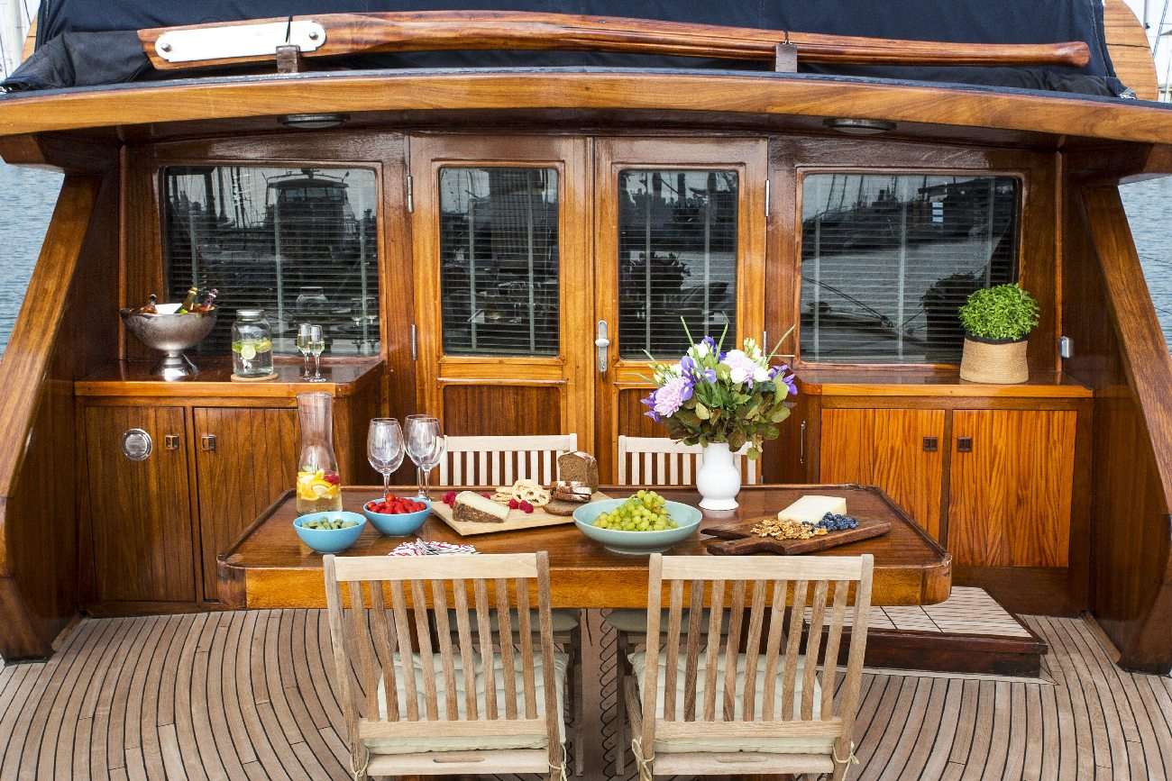 The aft deck provides an alfresco dining possibility as well as space to relax.