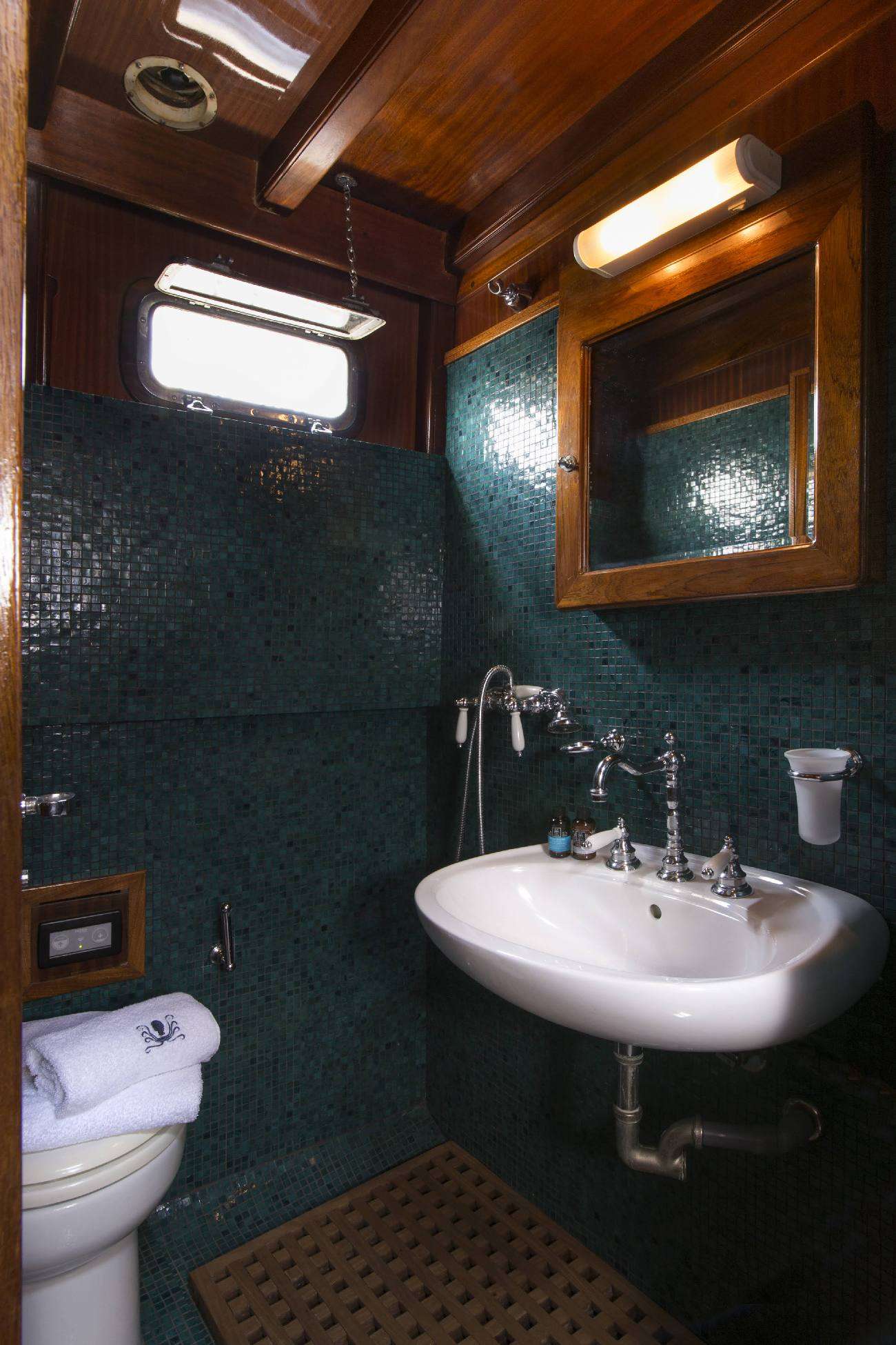 There are two cabins with ensuite bathrooms and one ensuite bathroom that is shared between the remainder of the cabins. Tenders & Toys