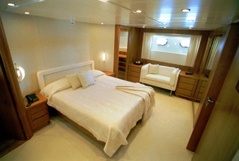 Motor Yacht LAYAZULA comfortably accommodates 10 guests in 4 stylish and elegant cabins. The Master Cabin is located forward on the main deck and boasts a large king sized bed and ensuite with spa pool tub/steam room. On the lower deck you’ll find the full beam width VIP cabin with en-suite bathroom and two identical twin cabins.