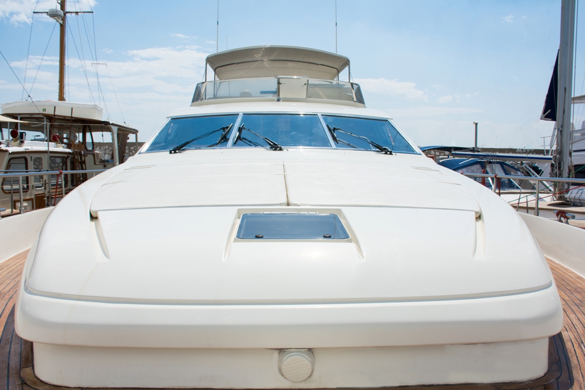 The flybridge offers yet another alfresco dining area for up to ten people which are also equipped with a refrigerator, a barbecue and a sunbed. The bow boasts an oversized sun pad.