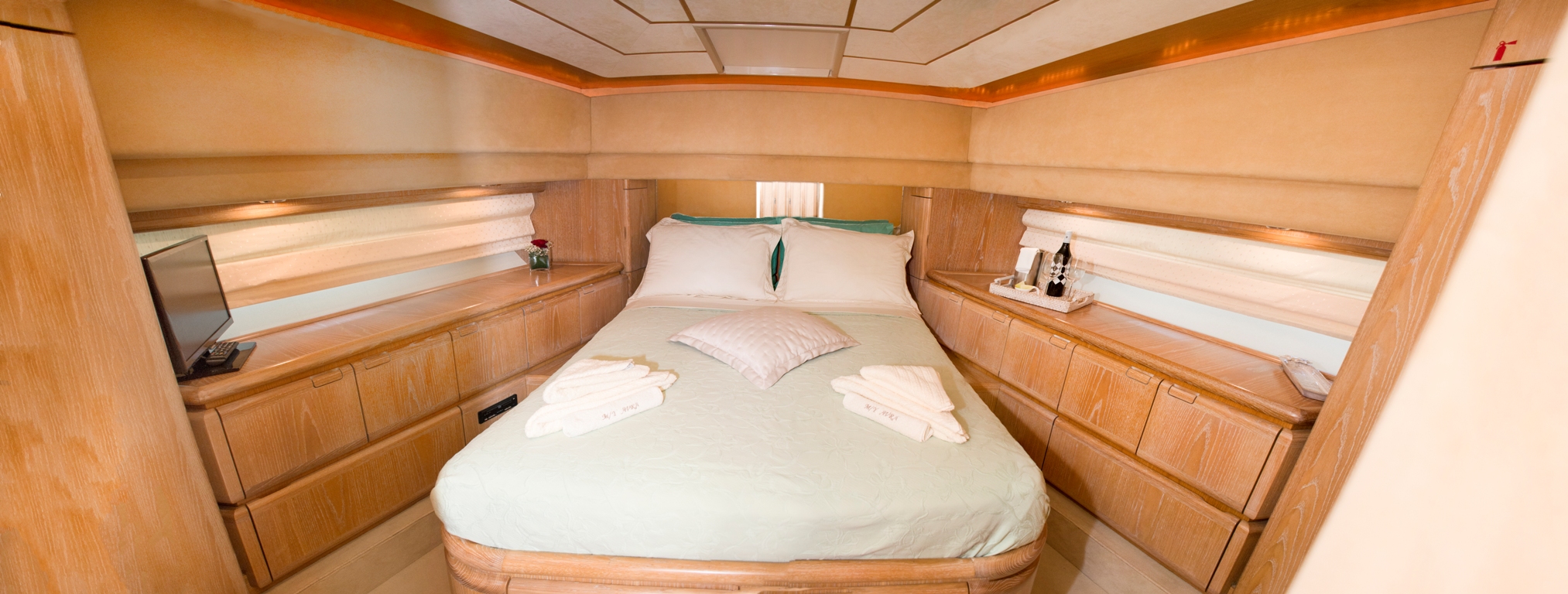 Exterior areas of the yacht include a seating area for up to ten guests on the main deck, great for socialising or alfresco dining.