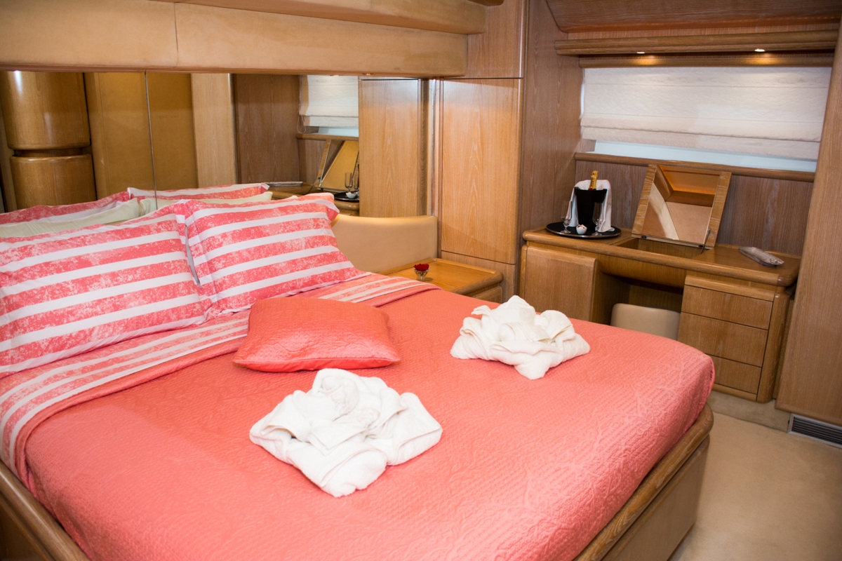 Exterior areas of the yacht include a seating area for up to ten guests on the main deck, great for socialising or alfresco dining.