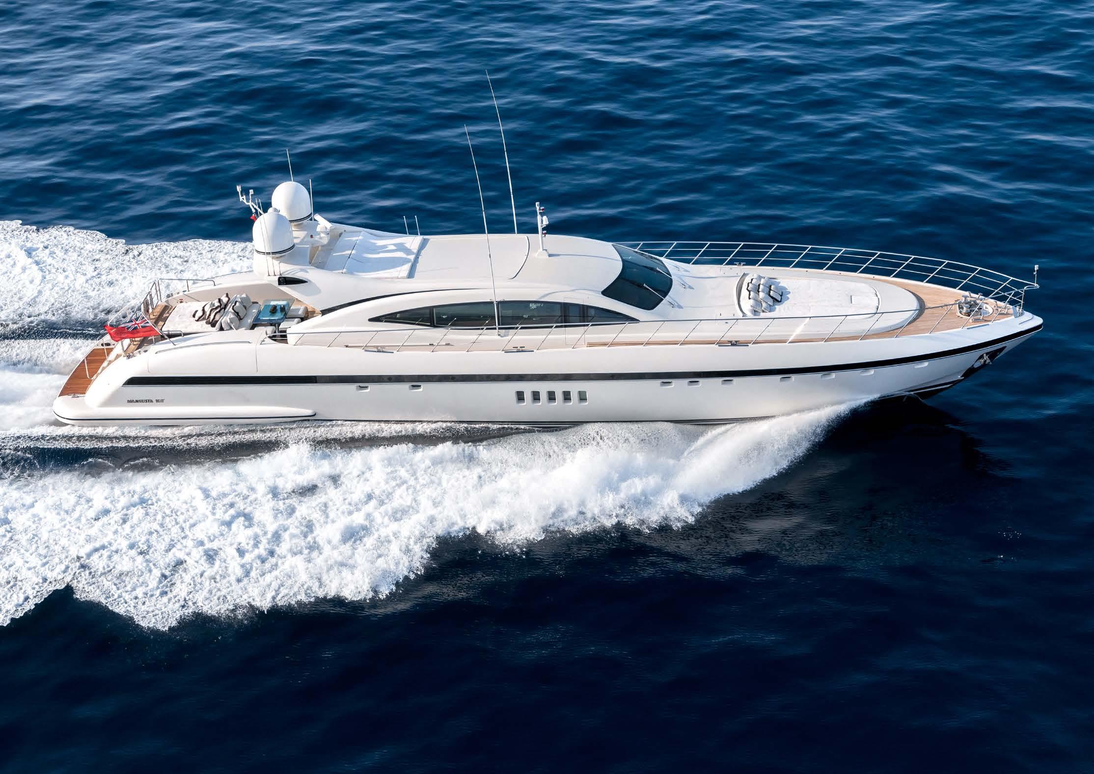 Built by Mangusta (part of Overmarine Group) in 2008, 33.5m/110ft open yacht LIONCHASE was designed by Stefano Righini with naval architecture by Andrea Bacigalupo. The accommodation sleeps a maximum of eight guests over four ...