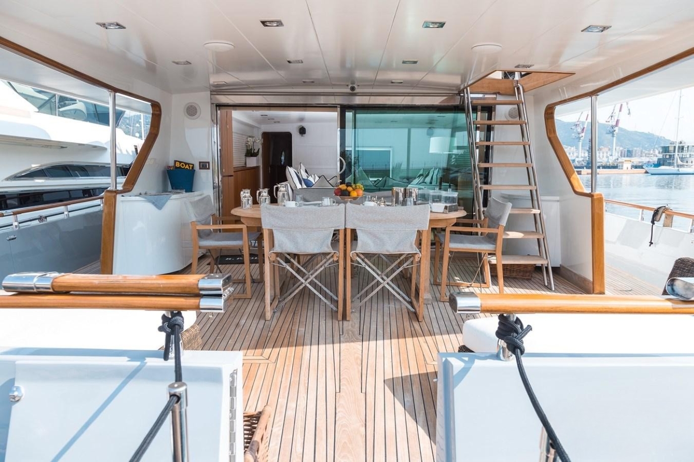 The aft section of M/Y PAOLUCCI is fitted with an alfresco dining table ...