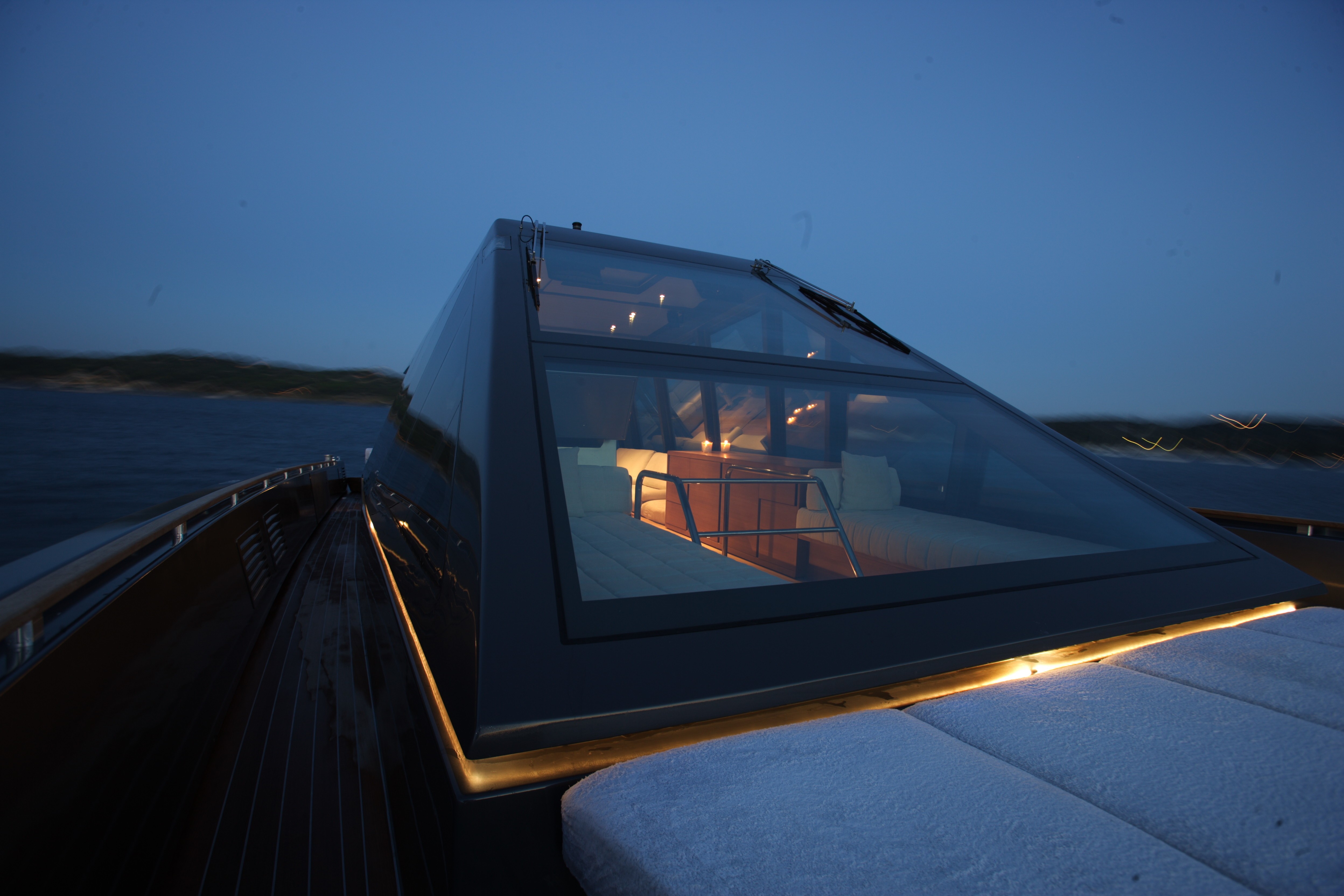 The port side is fitted with a C-shaped sofa and a raised table for dining as a group of 4, while opposite the elongated sofa leaves plenty of leg room for guests to stretch out and marvel at the destination through the ...