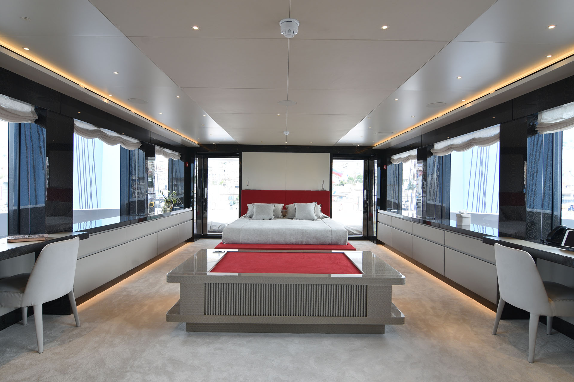 The guest accommodation is placed upon the main deck and consists of a Master suite, a VIP stateroom, two double cabins, a two twin cabin and one twin cabin convertible to a double. On the port side, there is a children's lounge/media room that benefits from plenty of light through the large windows for daytime entertaining.