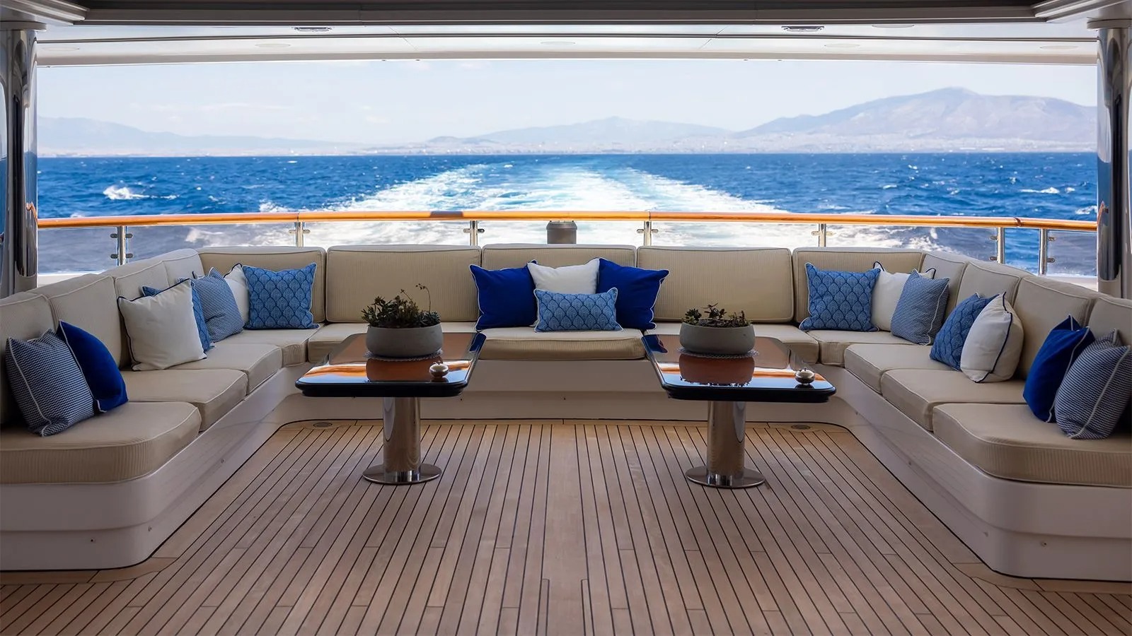 A massive Jacuzzi on the sundeck forward is the centrepiece for another sun-drenched seating ...