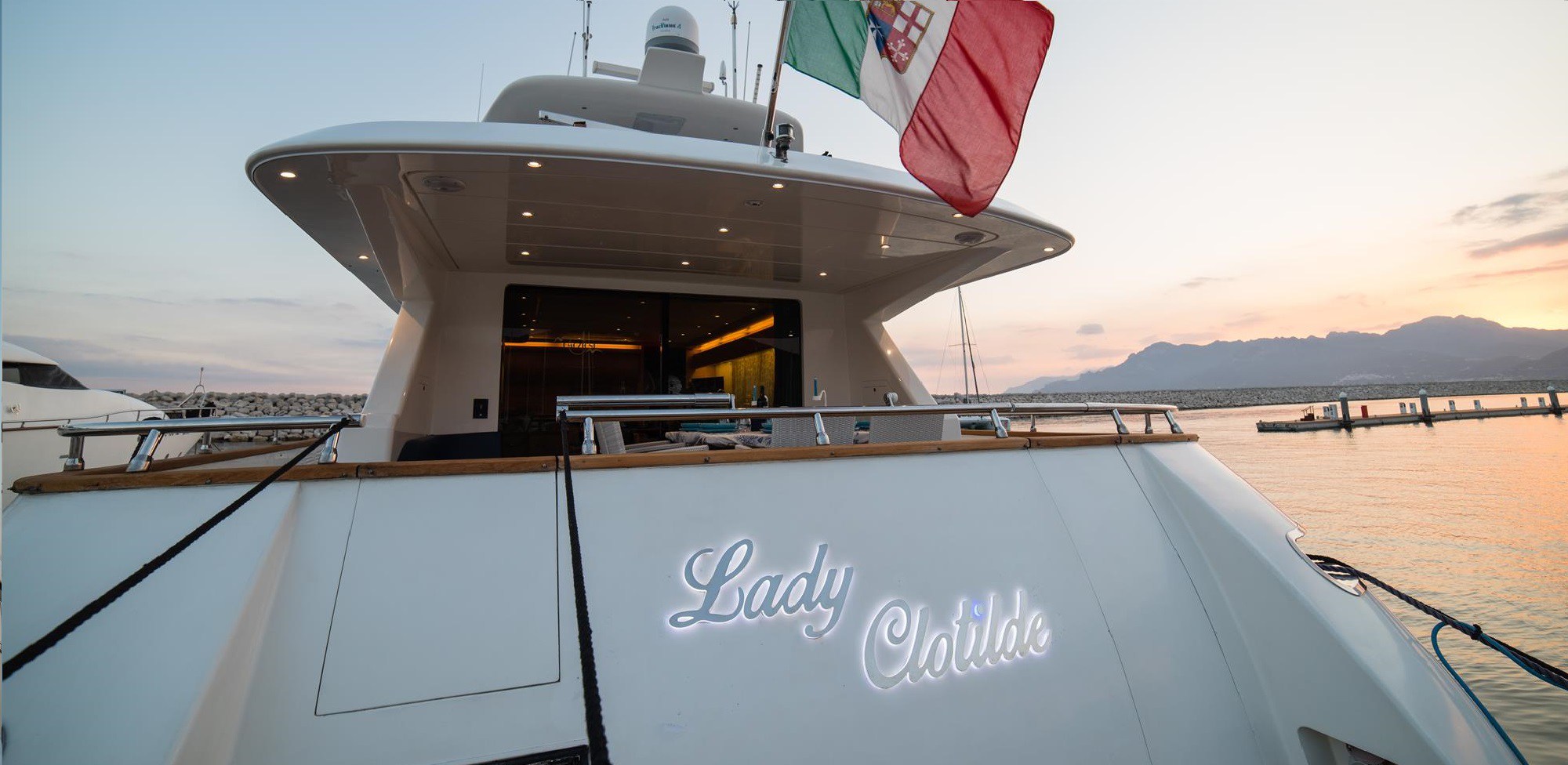Built by Maiora in 1994 and last refitted in 2018, 23m/76ft motor yacht LADY CLOTILDE is constructed with a GRP hull and superstructure for a shallow draft that offers excellent access to secluded beaches.